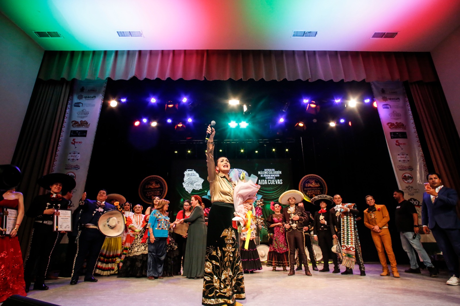El evento contó con la presencia de la reconocida intérprete Aida Cuevas, quien fue homenajeada por sus 50 años de trayectoria artística, siendo considerada una de las máximas exponentes de la música ranchera en México.